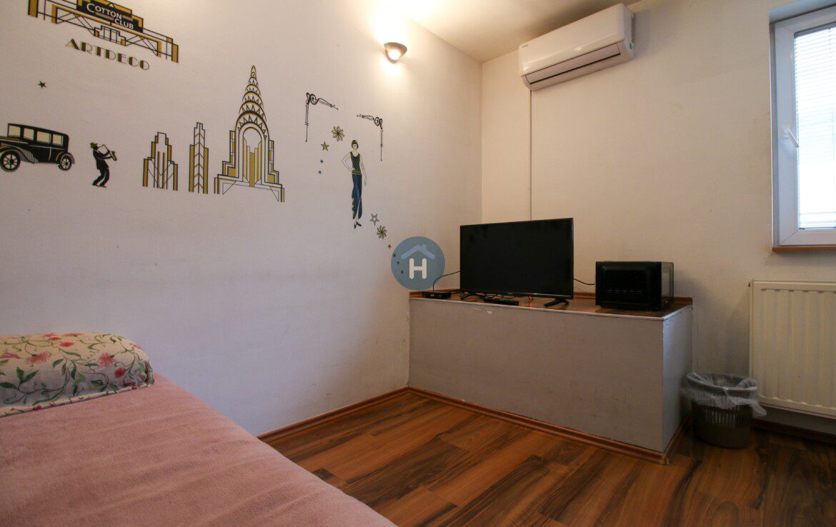 The apartment is on the first floor of a house with no elevator. It consists of one bedroom and one bathroom. The bedroom includes a bed and a closet, while the desk and chair are located in the living room. The apartment comes with bed linen and towels. All additional amenities are listed under the facilities section.