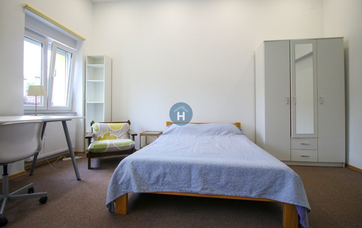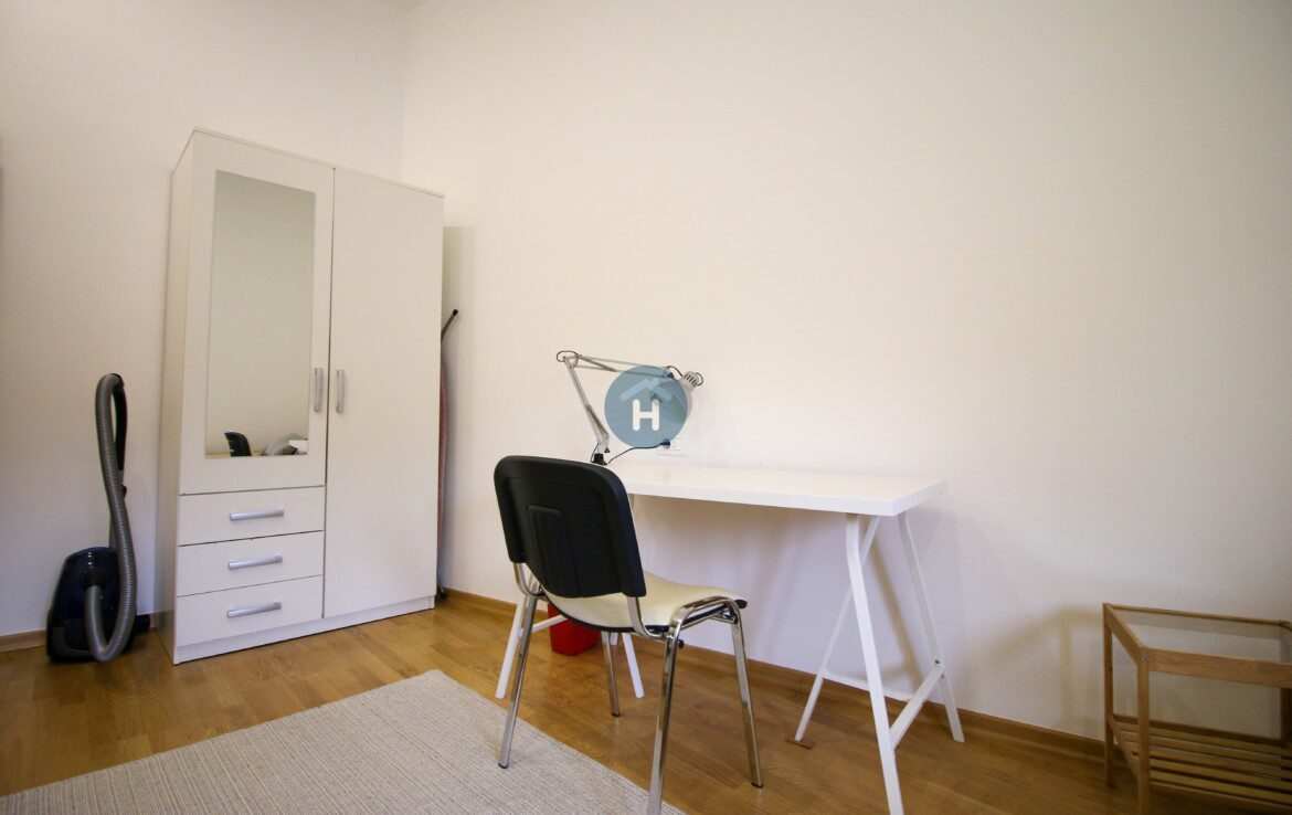 The apartment is on the first floor of a building with no elevator. It consists of three bedrooms and one bathroom. Each bedroom includes a bed, a closet, a desk, and a chair, and comes with bed linen and towels. All additional amenities are listed under the facilities section.