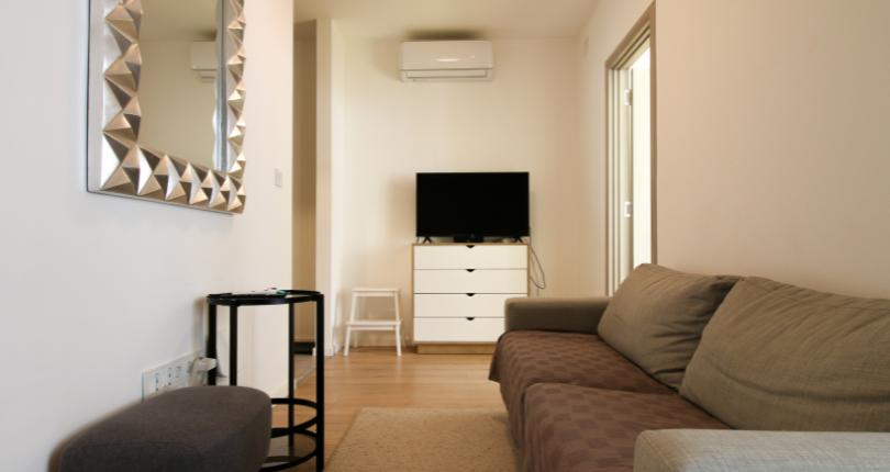 The apartment is on the first floor of a building with an elevator. It consists of two bedrooms, one bathroom, and a living room. Each bedroom includes a bed, a closet, a desk, and a chair, and comes with bed linen and towels. All additional amenities are listed under the facilities section.