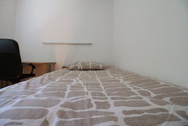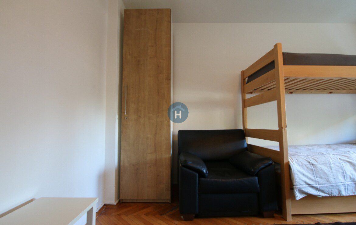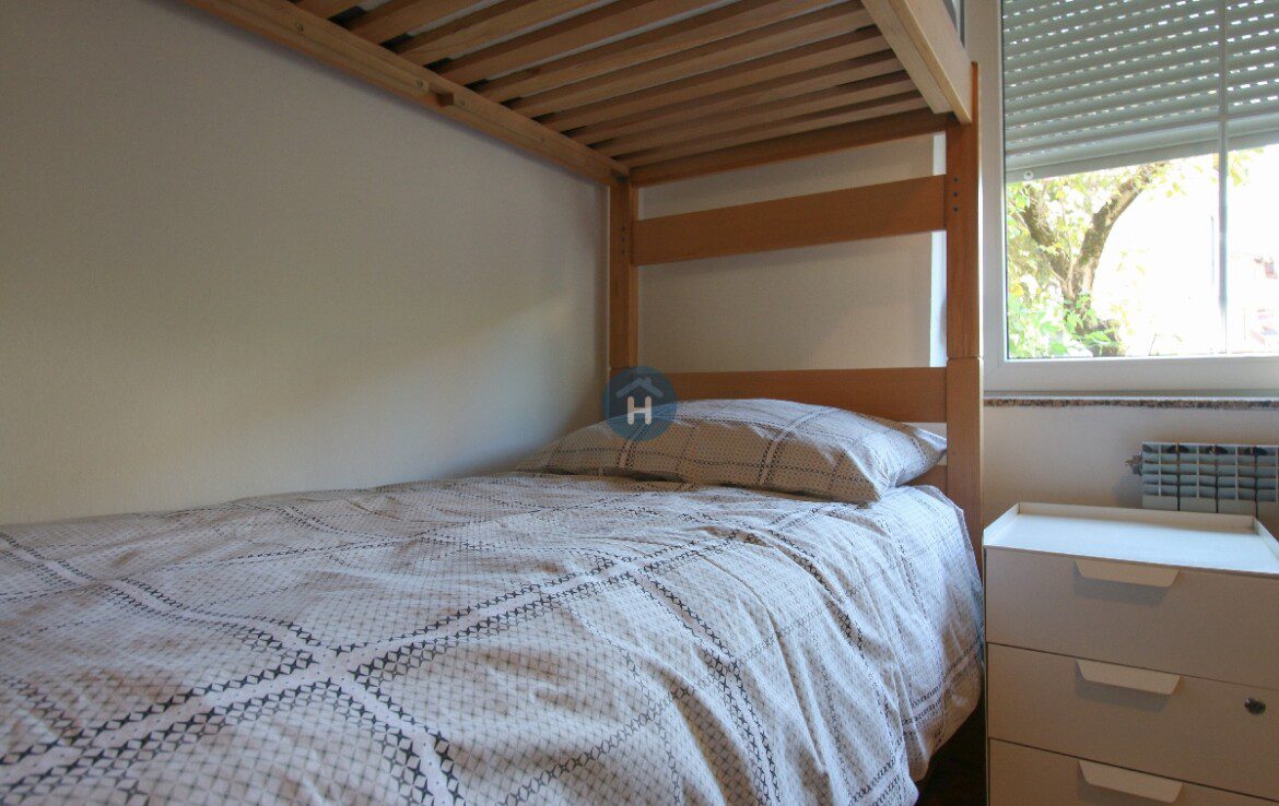 Room Ravnice Two – 1B offers a comfortable and private living space, perfect for both short and long stays. The room is equipped with bed sheets and linen, a fridge, heating, and a secure bedroom lock.