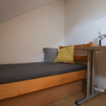 Room Ravnice Two – 4A offers a comfortable and private living space, perfect for both short and long stays. The room is equipped with air conditioning, bed sheets and linen, a fridge, heating, and a secure bedroom lock. It also features a private bathroom for your comfort and convenience.