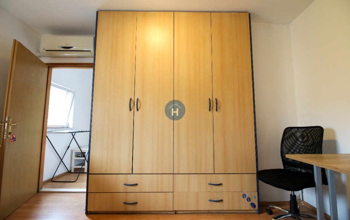 Room Ravnice Two – 5B offers a comfortable and private living space, perfect for both short and long stays. The room is equipped with air conditioning, bed sheets and linen, a fridge, heating, and a secure bedroom lock.